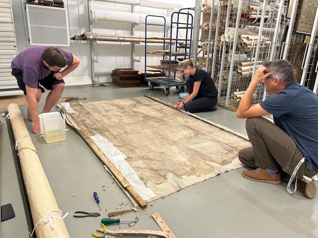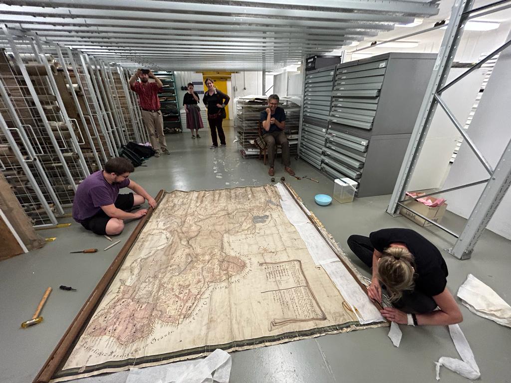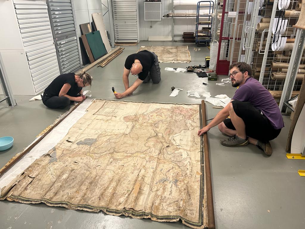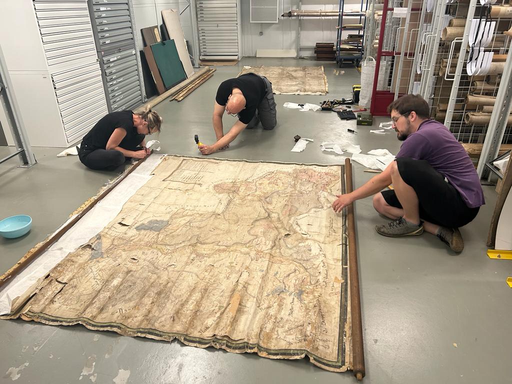 Příprava a balení map k transportu V Státním oblastním archivu byla vybrána mapa, která bude v rámci projektu odborně restaurována. Již sama příprava mapy k transportu byla náročným úkolem. Zároveň byla pořizována videodokumentace pro potřeby řešení projektu.