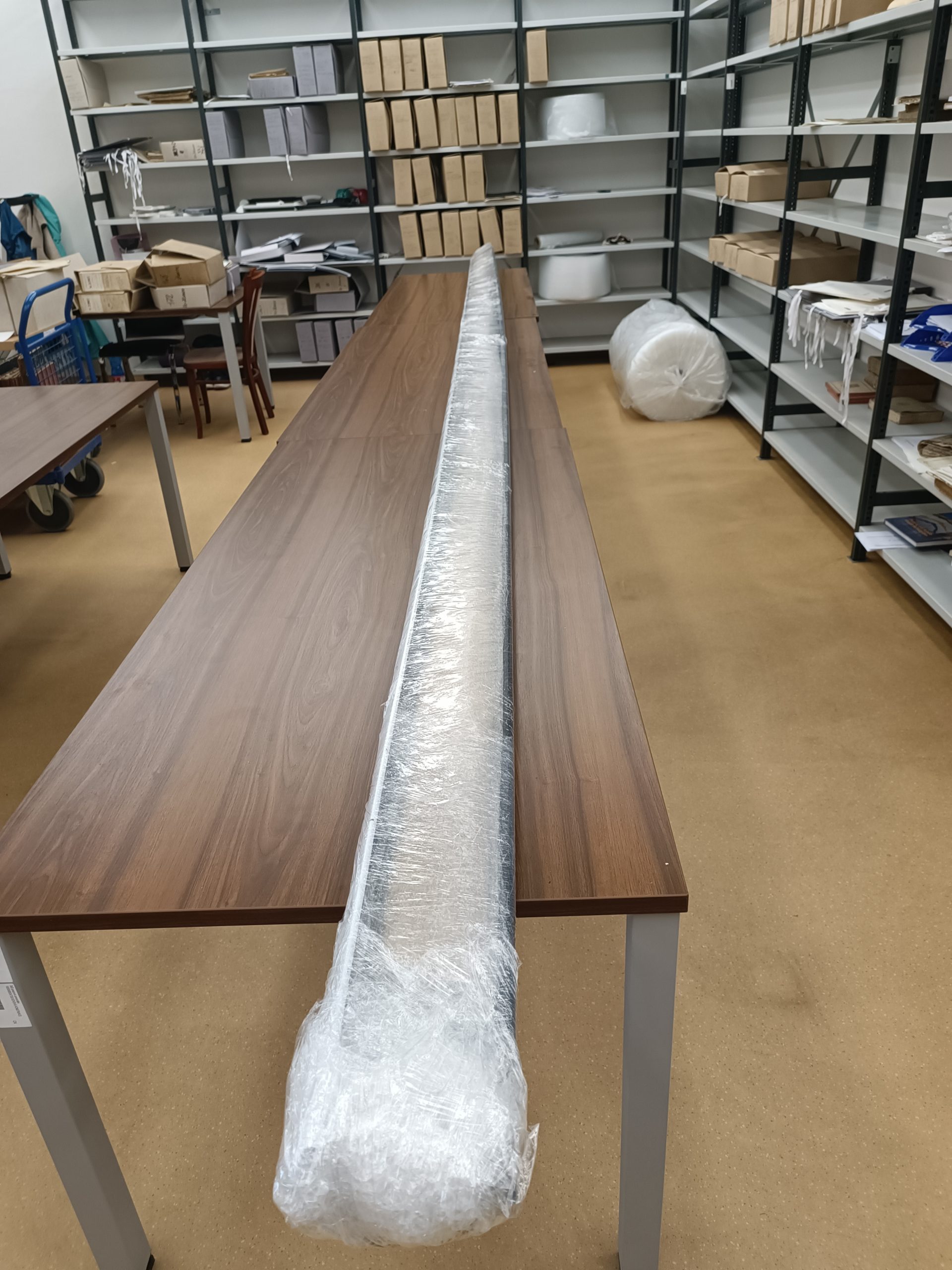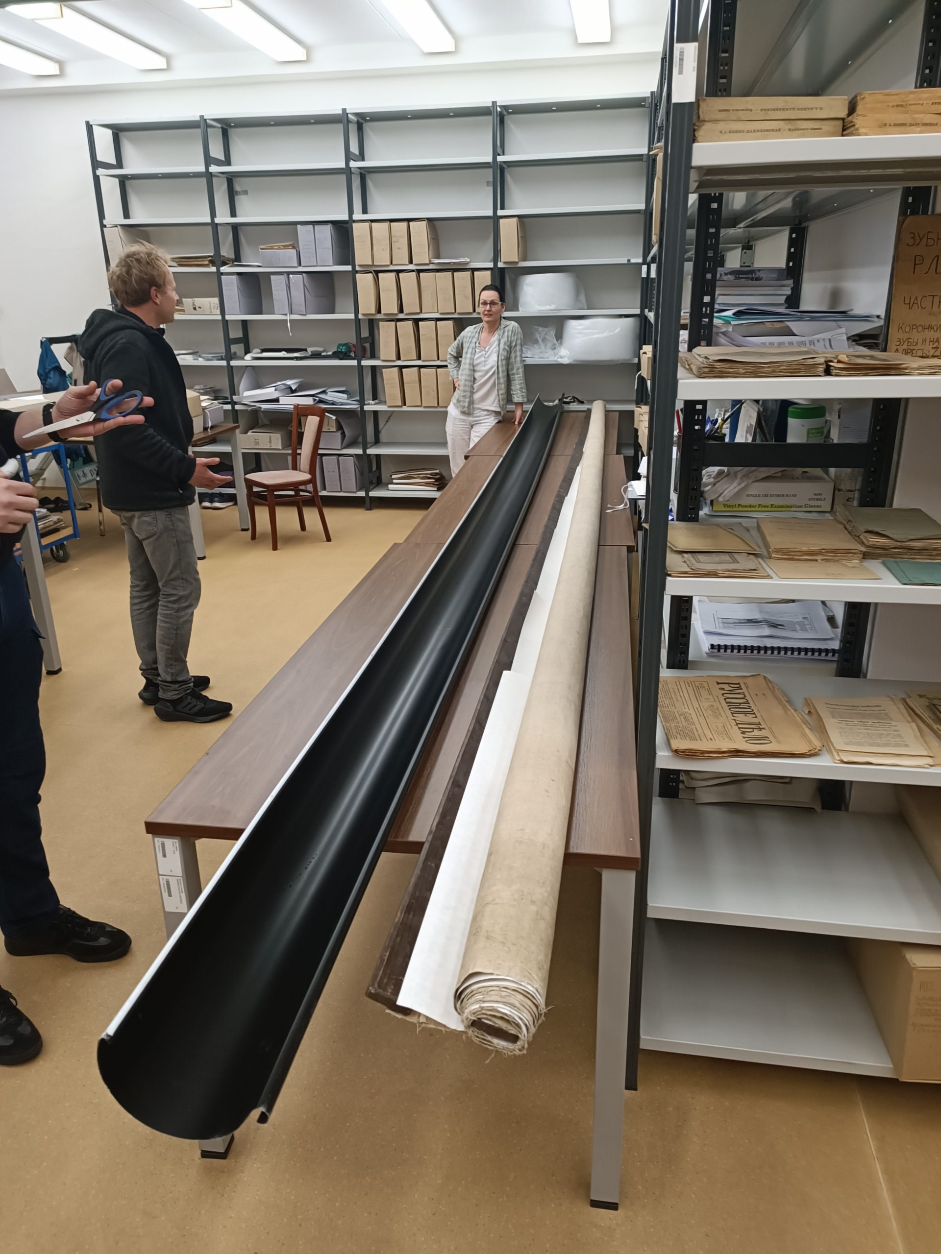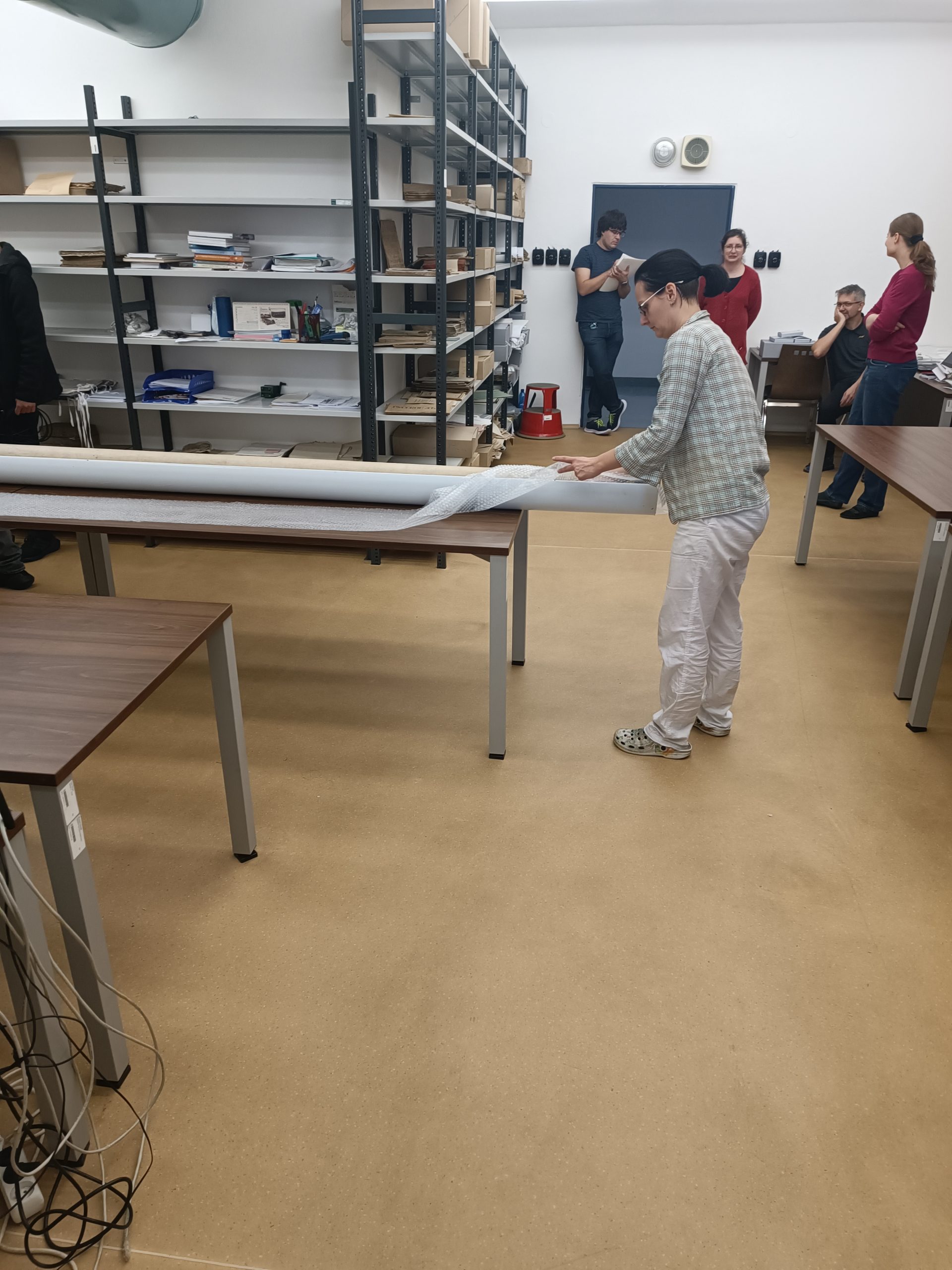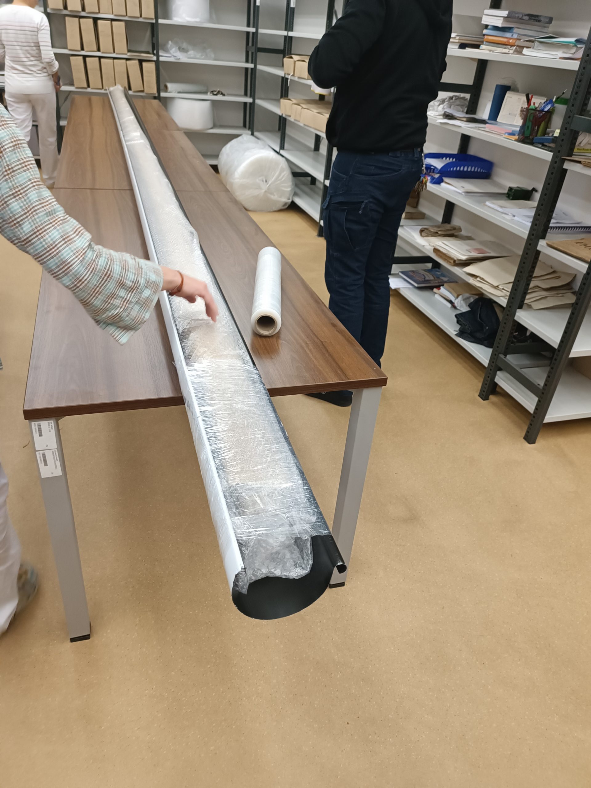 Již vynesení mapy z archivu byl oříšek. Do výtahu se nevešla, jelikož její délka byla 7 metrů, a po schodišti také nešla vytočit. Nakonec se muselo využít požární schodiště, kde se mapa protáhla úzkou mezerou mezi schodišti. I pro transport muselo být objednáno stěhovací vozidlo s krytou ložní plochou délky 7 metrů.