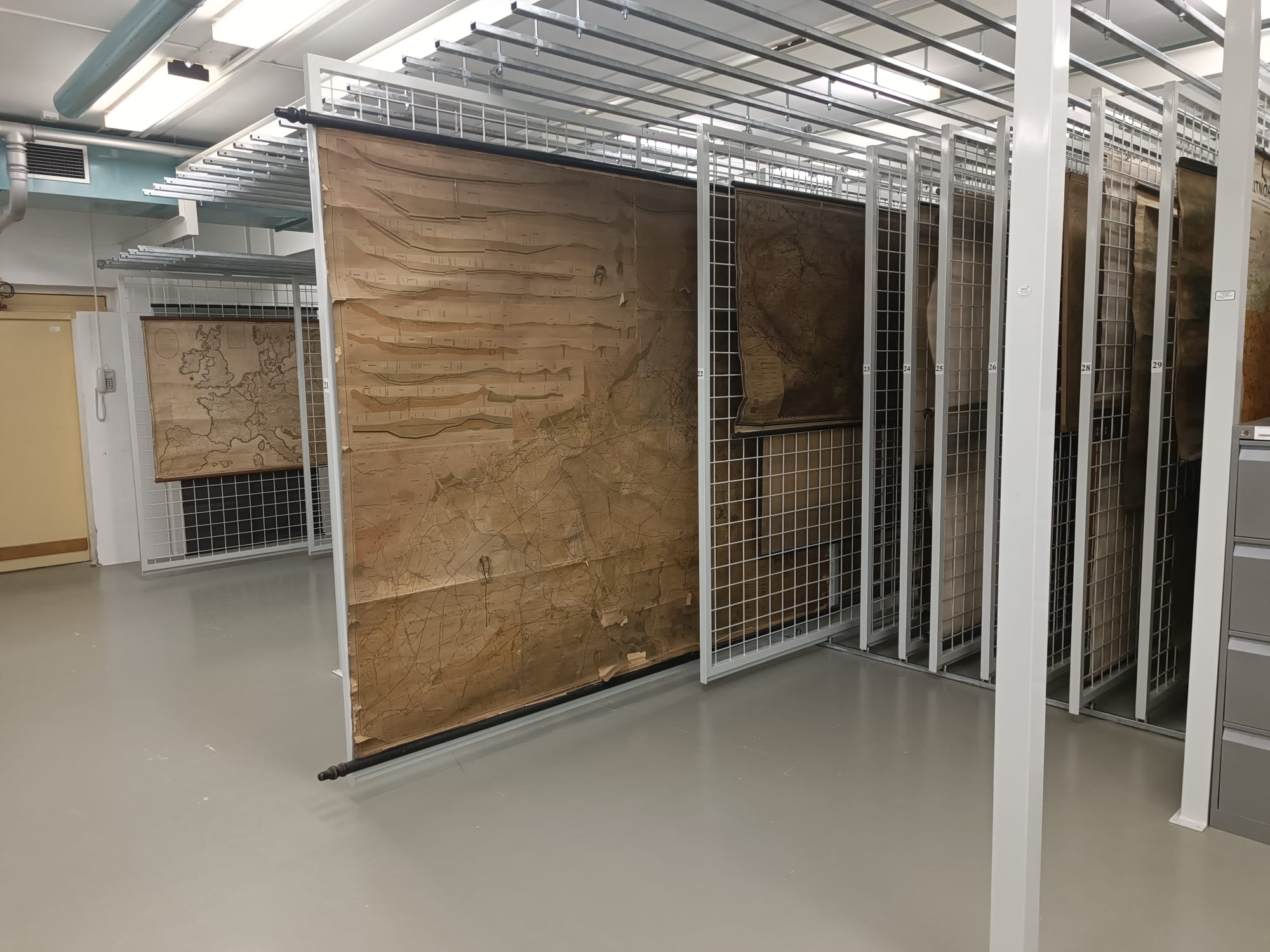 Uložení map Kvalita uložení velkoformátových archiválií se v jednotlivých archivech a paměťových institucí výrazně liší – od „hromady“ v uličce až po elegantní závěsné rámy v klimatizovaných prostorech.